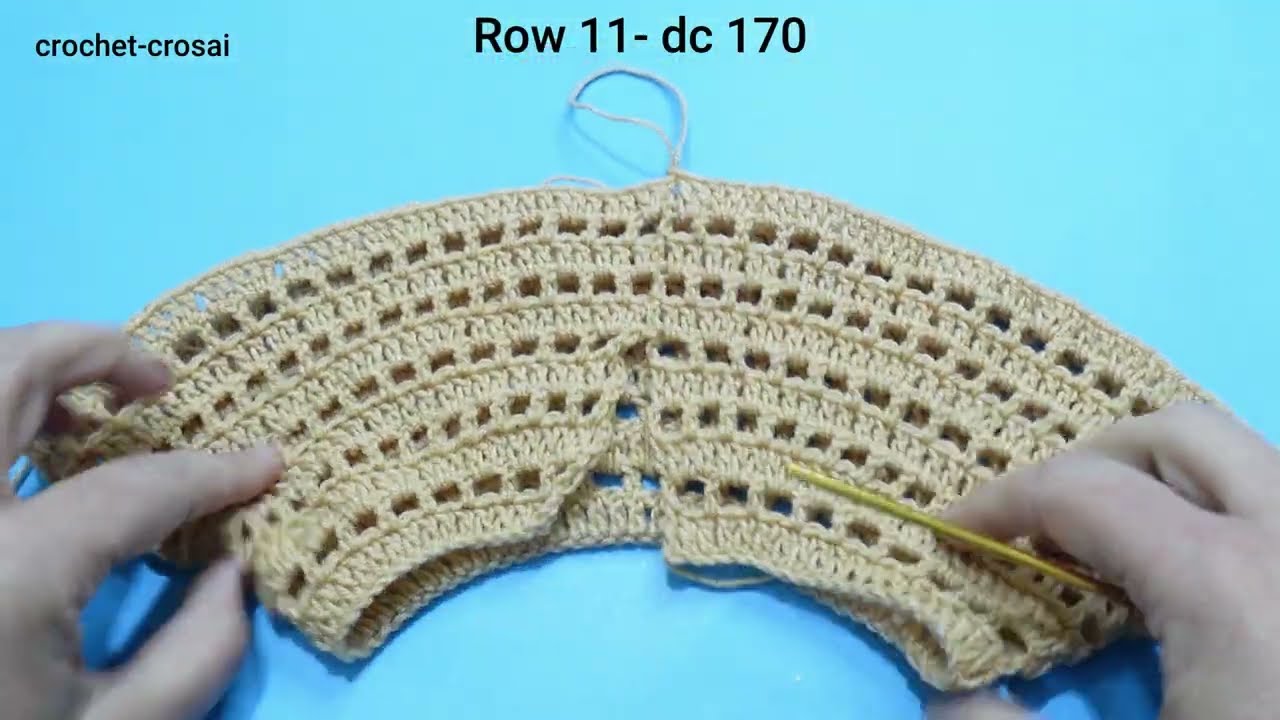 Adjust yoke width by adding or reducing rounds or stitches per increase.