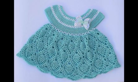 - Continue the shell pattern for about 20–25 rows or until the dress is approx. 11–12 inches long.