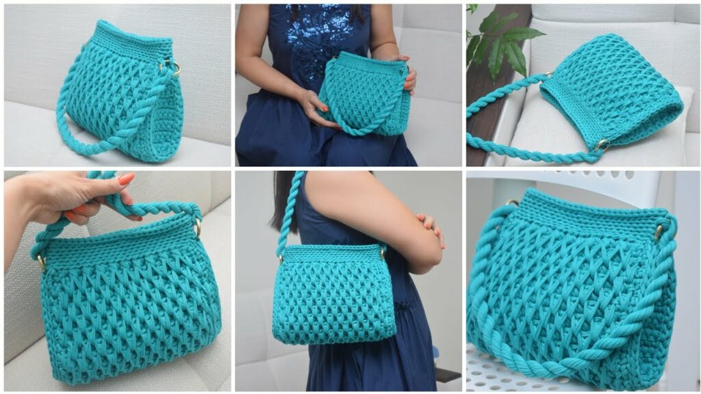 - Strap: Instead of handles, you can crochet a long strap in single crochet or the honeycomb stitch and attach it to the sides of the bag.