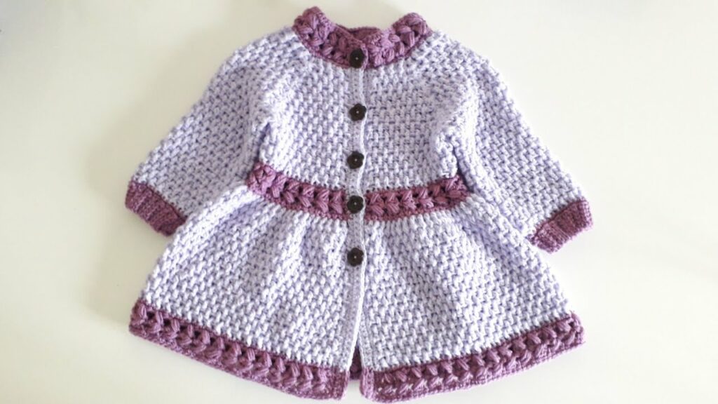 - Hem: Finish the bottom edge of the coat with a pretty, decorative hem (e.g., a scalloped edge made with shell stitches, a delicate picot border, or a few rounds of simple ribbing for stability).
