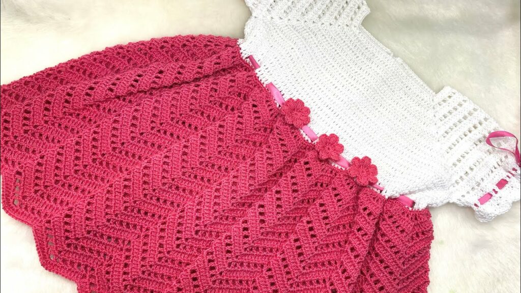 - Hemline Edging: Finish the bottom of the dress with a neat border, often matching the neckline or armhole edging, or with a simple ruffled/shell design (perfect for the “