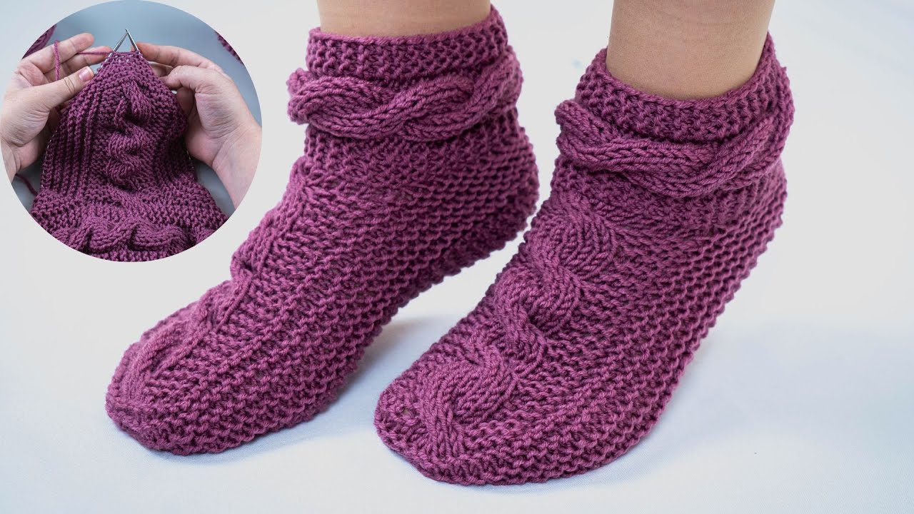 Knitted slippers or socks with a braided (cable) design combine comfort and style. Even if you’re a beginner, you can create a beautiful pair by using basic cables—these are easy to follow and make your slippers look more professional.