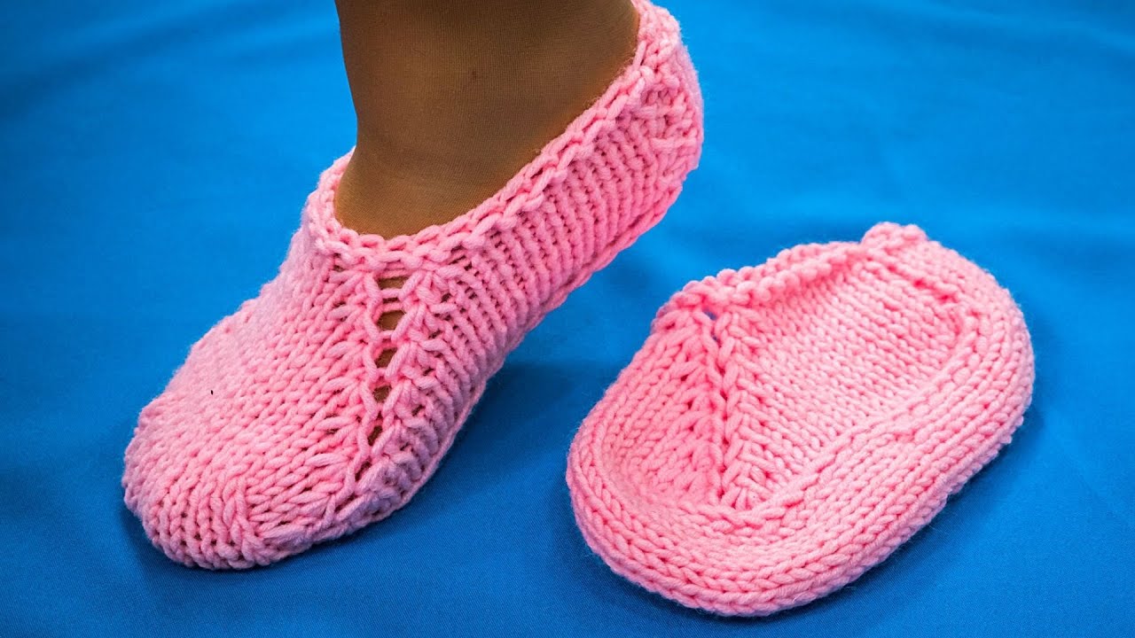 Use chunky yarn and big needles — it will knit faster and give a cozy slipper.